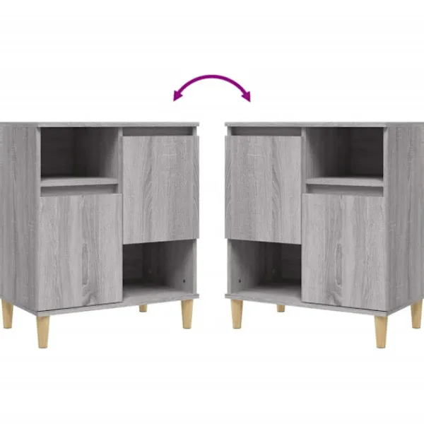 Dessa trendiga skänkar, med en elegant och klassisk design, är tänkt att uppgradera din interiör till nästa nivå. Hållbart material: Det konstruerade träet är av exceptionell kvalitet med slät yta och är också starkt, stabilt och fuktbeständigt. Skåpet är tillverkad av konstruerat trä och är lätt att rengöra med en fuktig trasa.Gott om förvaringsutrymme: Denna skänk har 4 lådor och 2 dörrar, med gott om lagringsutrymme för att hålla dina tidskrifter, böcker, DVD-skivor, multimediaenheter och andra nödvändigheter välorganiserade och inom räckhåll.Träben: Benen i massivt eukalyptusträ ger sidobordet ett naturligt och trevligt utseende samtidigt som det står stabilt.Visningsfunktion: Den robusta ovansidan är perfekt för krukväxter, inramade foton och andra dekorativa föremål. Bra att känna till:Skåpdörrarna kan monteras på två sätt. Varning:För att förhindra att den välter måste denna produkt användas tillsammans med det medföljande väggfästet.