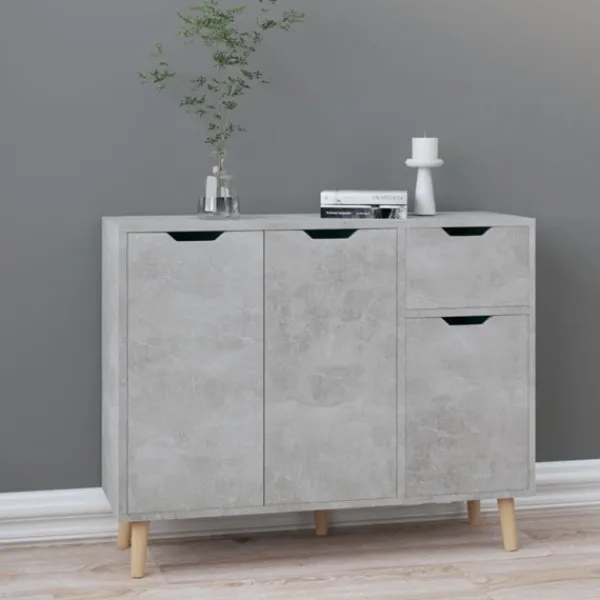 Denna skänk ger en känsla av elegans och ett elegant utseende i ditt vardagsrum. Denna skänk är tillverkad av kvalitativt konstruerat trä som säkerställer dess hållbarhet och är lätt att rengöra med en fuktig trasa. Skänken har gott om förvaringsutrymme för böcker, multimediaapparater och andra föremål. Den stadiga bordsytan är perfekt för dekorativa objekt såsom inramade foton, krukväxter eller en vas.