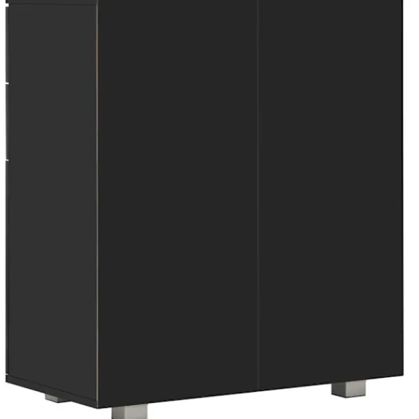 Med sitt praktiska förvaringsutrymme blir skänken ett perfekt komplement i alla rum. Eftersom den är tillverkad i spånskiva med en högglansig finish är byrån vacker och oerhört stadig och stabil. Dessutom är den utrustad med 2 lådor och har gott om plats för dina olika prylar, så att du kan hålla ditt rum städat. Detta förvaringsskåp i högglans är enkelt att rengöra.