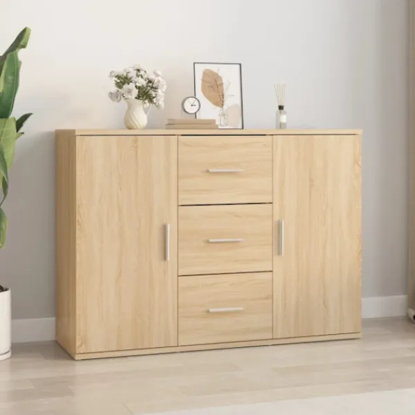 Denna skänk med minimalistisk design blir ett såväl praktiskt som dekorativt tillskott i ditt hem.