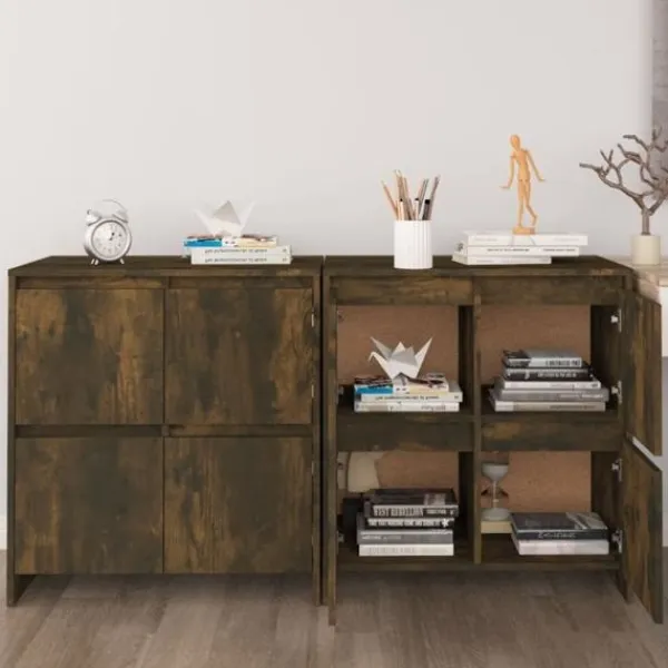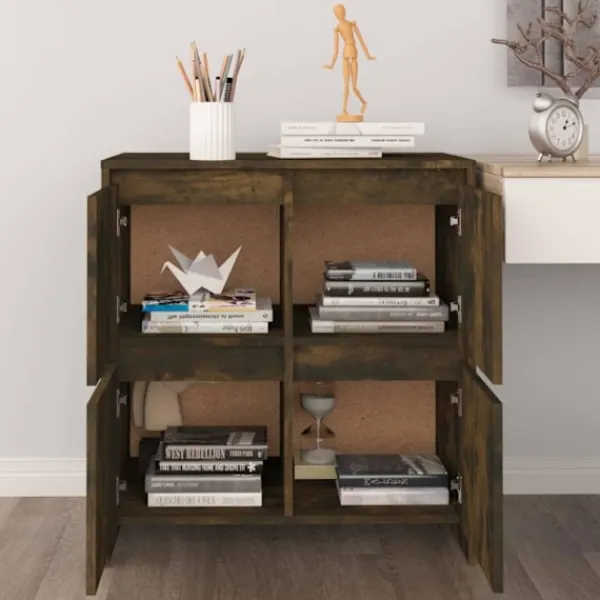 Dessa skänkar, med en minimalistisk design, är avsedda att vara ett praktiskt såväl som exceptionellt dekorativt tillskott till ditt hem. Den har 4 dörrar med gott om förvaringsutrymme för böcker, multimedieapparater och andra föremål. Den robusta ovansidan är ideal för att visa dekorativa föremål, fotoramar eller krukväxter på. Dessutom är dessa förvaringsskåp enkla att rengöra med en fuktig trasa.