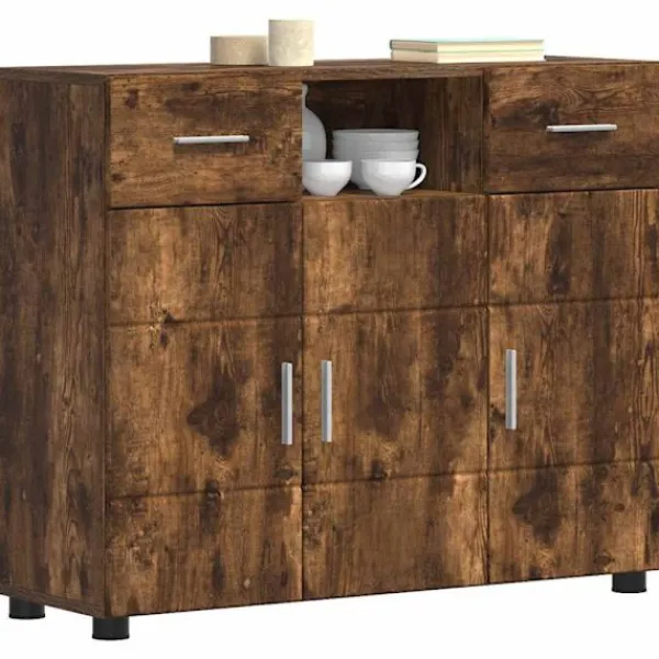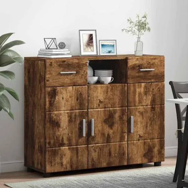 - Premium konstruerat trä: Skåpet är gjort av konstruerat trä, noga utvalt för sin styrka och stabilitet. Det här materialet är hållbart och motståndskraftigt, vilket ger lång livslängd för daglig användning. Den fina ytan framhäver skåpets eleganta stil och gör att det passar perfekt i moderna hem.