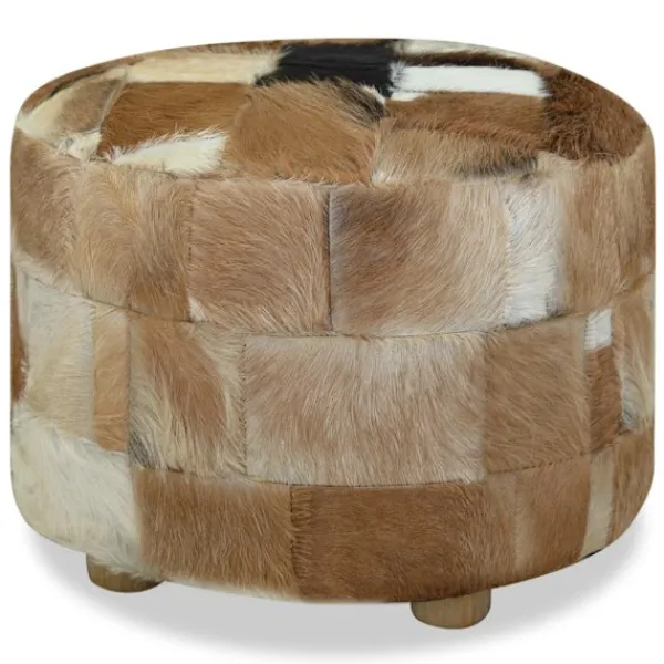 Puffen är mycket bekväm att sitta på och passar alla slags inredningsstilar. Den hållbara klädseln av äkta getläder är väldigt mjuk. Den starka träramen gör den robust och hållbar. Dess vackra getskinnsmönster ger den ett elegant utseende. Kort sagt, den här puffen är mjuk, bekväm och väldigt trendig. Den är redan monterad; ingen montering krävs.
