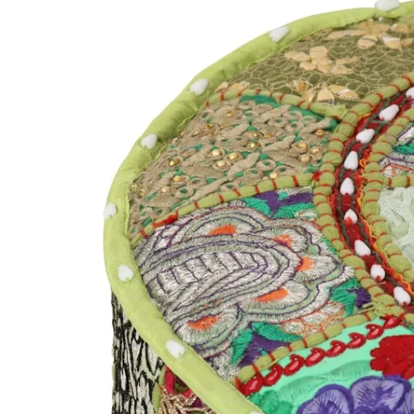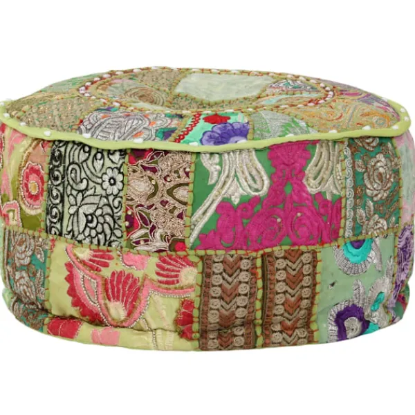 Koppla av en stund på vår handgjorda sittpuff i vintage stil! Den blir ett riktigt blickfång i inredningen tack vare sitt vackra lappmönster. Denna fotpall är handgjord i 100% bomull med stoppning för att den ska vara mjuk och bekväm. Den är prydd med fina exotiska broderier som ger din inredning en indisk känsla. Ställ puffen framför en soffa eller en fåtölj för att få en mysig atmosfär i rummet! Obs: Det kan finnas vissa olikheter mellan varje produkt eftersom de är handgjorda.