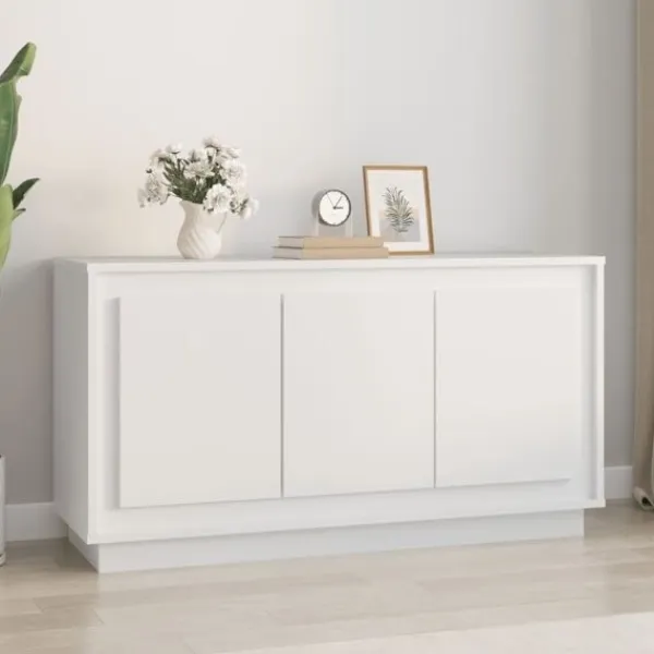 Denna klassiska skänk med ett tidlöst utseende kan bli ett perfekt tillägg i din heminredning. Hållbart material: Det konstruerade träet är av exceptionell kvalitet med slät yta och är också starkt, stabilt och fuktbeständigt. Skåpet är tillverkad av konstruerat trä och är lätt att rengöra med en fuktig trasa.Gott om förvaringsutrymme: Skåpet är utrustat med 6 utrymmen, vilket ger gott om förvaringsutrymme för att hålla dina olika dagliga saker välorganiserade och inom räckhåll.Visningsfunktion: Översidan av denna byrå är utmärkt för att placera dina dekorativa föremål, fotoalbum eller små växter på.Praktiska dörrar: Håll dina väsentligheter dammfria genom att bevara dem i detta förvaringsskåp. Bra att känna till:För att göra monteringen så enkel som möjligt, levereras varje produkt med en bruksanvisning. Varning:För att förhindra att den välter måste denna produkt användas tillsammans med det medföljande väggfästet.