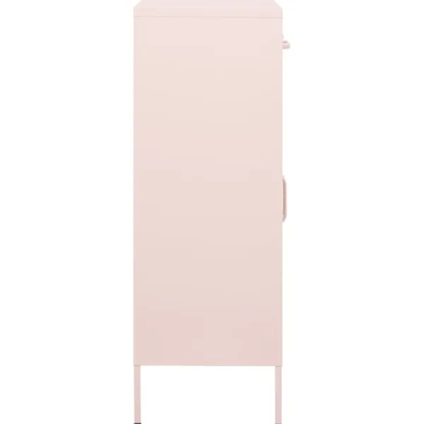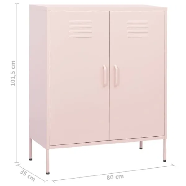 Detta förvaringsskåp med en praktisk design blir garanterat ett blickfång i ditt hem. Detta sidoskåp, med stålkonstruktion, är robust och hållbart. Det finns utjämnare på botten för att justera höjden efter dina behov. Skänken har 2 dörrar med justerbara hyllor inuti för att passa föremål i olika storlekar, såsom böcker, tidningar och andra personliga saker.