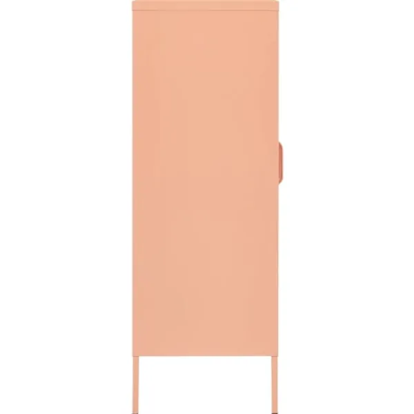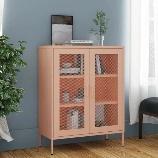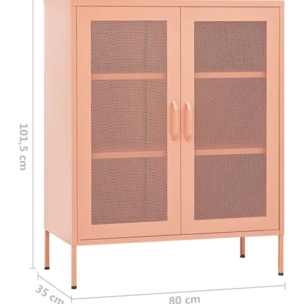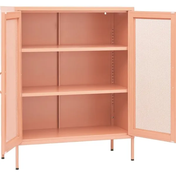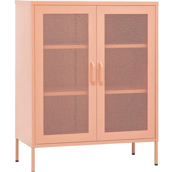 Detta förvaringsskåp med en praktisk design blir garanterat ett blickfång i ditt hem. Detta sidoskåp, med stålkonstruktion, är robust och hållbart. Det finns utjämnare på botten för att justera höjden efter dina behov. Skänken har 2 dörrar med justerbara hyllor inuti för att passa föremål i olika storlekar, såsom böcker, tidningar och andra personliga saker.