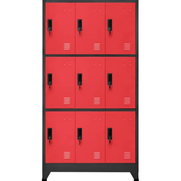 Detta förvaringsskåp är tillverkat i stål, vilket gör det hållbart och enkelt att rengöra. Varje fack är utrustat med en låsbar dörr som har luftventiler. Skåpet har gott om förvaringsutrymme för att hålla kläder och andra personliga tillhörigheter säkra. Dessutom har skåpet namnskyltshållare. Detta skåp är lämpligt för skolor och kontor när du behöver lagra olika saker.