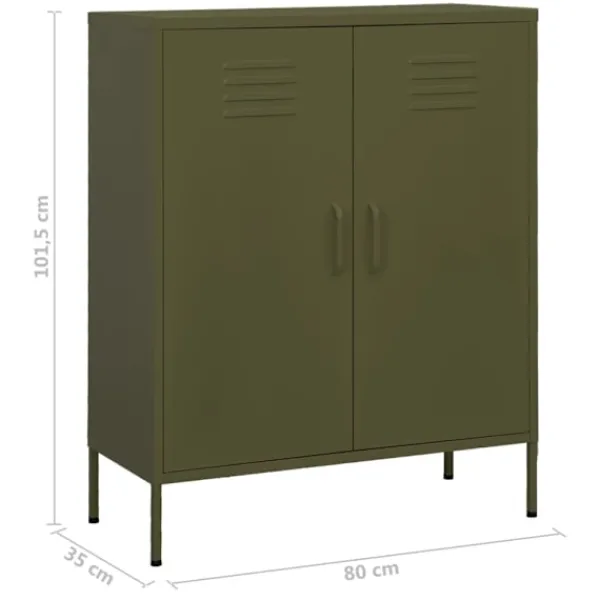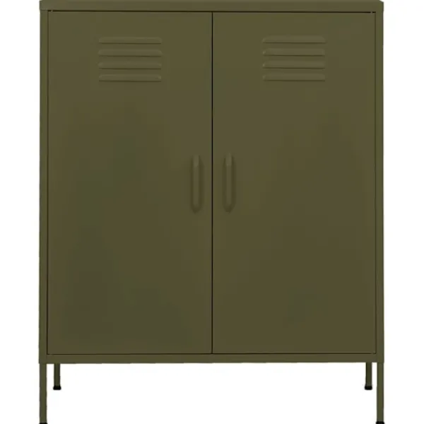 Detta förvaringsskåp med en praktisk design blir garanterat ett blickfång i ditt hem. Detta sidoskåp, med stålkonstruktion, är robust och hållbart. Det finns utjämnare på botten för att justera höjden efter dina behov. Skänken har 2 dörrar med justerbara hyllor inuti för att passa föremål i olika storlekar, såsom böcker, tidningar och andra personliga saker.