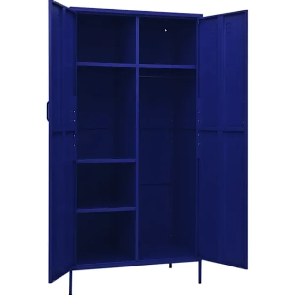 Håll din inredning välorganiserad och snygg med den här garderoben. Den är en perfekt förvaringslösning och utstrålar en chic känsla till ditt befintliga hem. Det här klädskåpet är tillverkat av stål, vilket gör det hållbart och lätt att rengöra. Detta klädskåp har 4 justerbara hyllor och ett stort fack med en upphängningsstång, med gott om förvaringsutrymme både för dina längre outfits och andra vikta kläder eller tillbehör, som tröjor, jeans, hattar, handväskor etc.