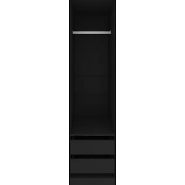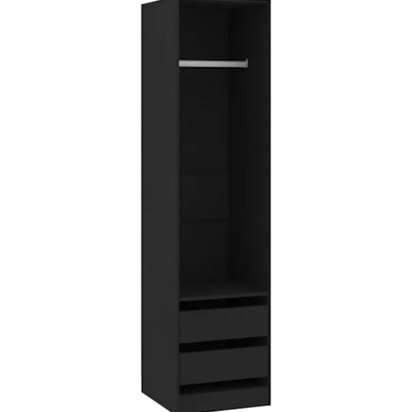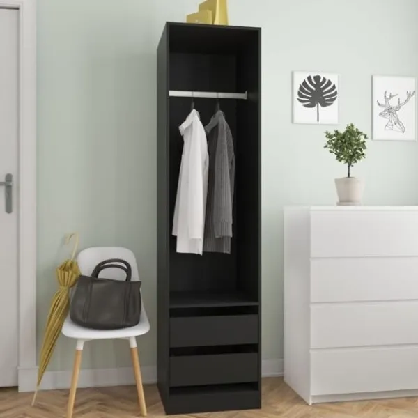 Denna kompakta garderob gör det enkelt att komma åt dina kläder eller favoritaccessoarer. Den blir en perfekt förvaringslösning och chic detalj i ditt hem. Garderoben är tillverkad av konstruerat trä, vilket säkerställer robusthet, hållbarhet och lång livslängd. Den har 2 lådor 1 stort, öppet utrymme med klädstång, med gott om plats både för längre klädesplagg och vikta kläder eller accessoarer såsom tjocktröjor, jeans, hattar, handväskor, osv. Produkten är lätt att rengöra. Denna garderob är lätt att montera.