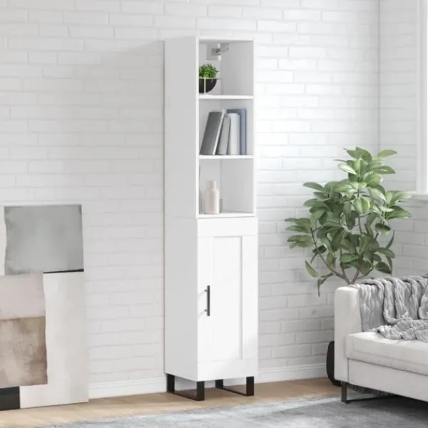 Letar du efter ett snyggt skåp till ditt hem? Detta högskåp ger din befintliga inredning en elegant charm! Hållbart material: Det konstruerade träet är av exceptionell kvalitet med slät yta och är också starkt, stabilt och fuktbeständigt.Gott om förvaring: Skåpet har gott om förvaringsutrymme för att hålla dina olika saker välorganiserade och inom räckhåll.Praktiska dörrar: Håll ordning i ditt hem genom att gömma småsaker bakom skåpets dörrar.Metallfötter: Metallfötterna ger din inredning ett lugn stil samtidigt som de säkerställer stabilitet. Varning:För att förhindra att den välter måste denna produkt användas tillsammans med det medföljande väggfästet. Bra att känna till:Skruvar och väggplugg ingår inte. Vi rekommenderar att du använder skruvar och plugg som passar dina väggar. Om du är osöker, sök professionell hjälp. Läs och följ varje steg i anvisningarna.
