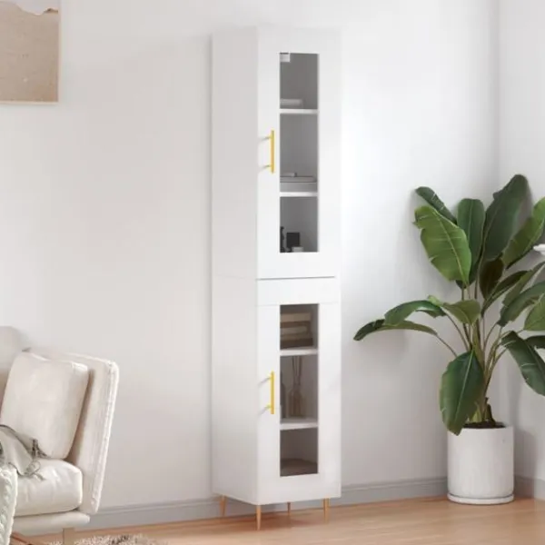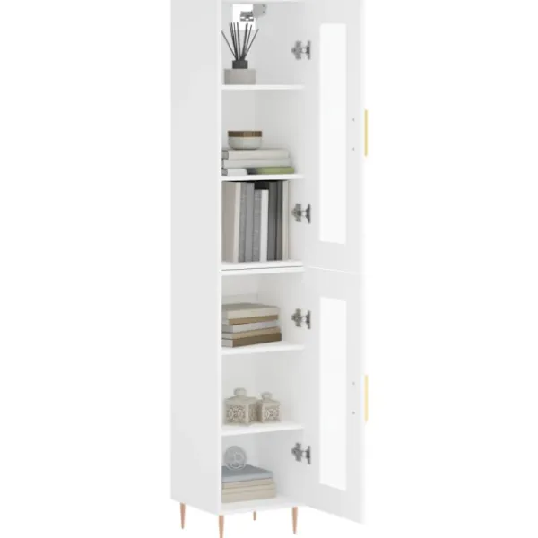Letar du efter ett snyggt skåp till ditt hem? Detta högskåp ger din befintliga inredning en elegant charm! Hållbart material: Det konstruerade träet är av exceptionell kvalitet med slät yta och är också starkt, stabilt och fuktbeständigt.Gott om förvaring: Skåpet har gott om förvaringsutrymme för att hålla dina olika saker välorganiserade och inom räckhåll.Praktiska dörrar: Håll ordning i ditt hem genom att gömma småsaker bakom skåpets dörrar.Järnben: Järnbenen utstrålar en industriell charm i din inredning samtidigt som de är stabila. Varning:För att förhindra att den välter måste denna produkt användas tillsammans med det medföljande väggfästet. Bra att känna till:Skruvar och väggplugg ingår inte. Vi rekommenderar att du använder skruvar och plugg som passar dina väggar. Om du är osöker, sök professionell hjälp. Läs och följ varje steg i anvisningarna.
