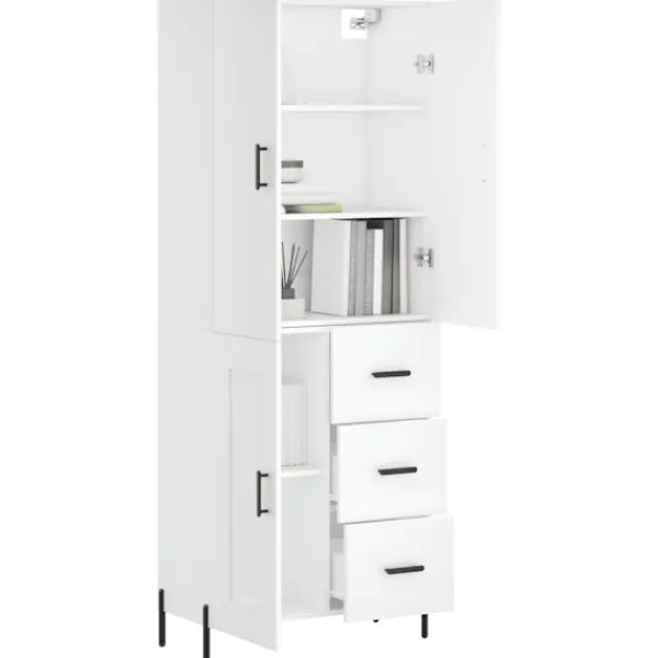 Letar du efter ett snyggt skåp till ditt hem? Detta högskåp ger din befintliga inredning en elegant charm! Hållbart material: Det konstruerade träet är av exceptionell kvalitet med slät yta och är också starkt, stabilt och fuktbeständigt.Gott om förvaring: Skåpet har gott om förvaringsutrymme för att hålla dina olika saker välorganiserade och inom räckhåll.Praktiska dörrar: Håll ordning i ditt hem genom att gömma småsaker bakom skåpets dörrar.Metallfötter: Metallfötterna ger din inredning ett lugn stil samtidigt som de säkerställer stabilitet. Varning:För att förhindra att den välter måste denna produkt användas tillsammans med det medföljande väggfästet. Bra att känna till:Skruvar och väggplugg ingår inte. Vi rekommenderar att du använder skruvar och plugg som passar dina väggar. Om du är osöker, sök professionell hjälp. Läs och följ varje steg i anvisningarna.
