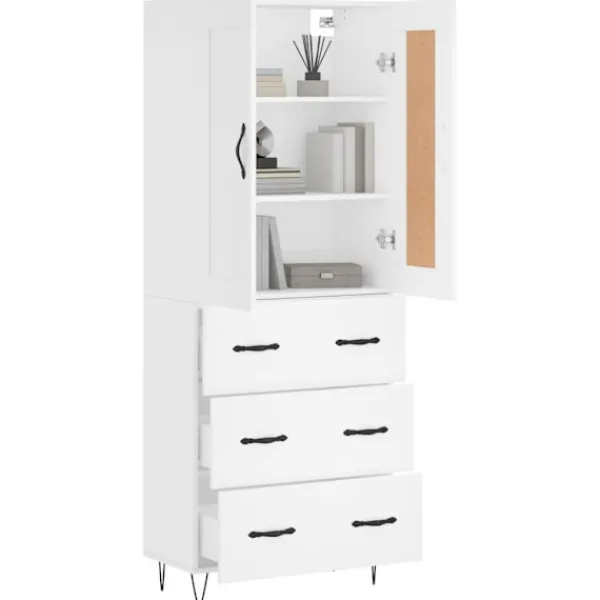 Letar du efter ett snyggt skåp till ditt hem? Detta högskåp ger din befintliga inredning en elegant charm! Hållbart material: Det konstruerade träet är av exceptionell kvalitet med slät yta och är också starkt, stabilt och fuktbeständigt.Gott om förvaring: Skåpet har gott om förvaringsutrymme för att hålla dina olika saker välorganiserade och inom räckhåll.Praktiska dörrar: Håll ordning i ditt hem genom att gömma småsaker bakom skåpets dörrar.Metallfötter: Metallfötterna ger din inredning ett lugn stil samtidigt som de säkerställer stabilitet. Varning:För att förhindra att den välter måste denna produkt användas tillsammans med det medföljande väggfästet. Bra att känna till:Skruvar och väggplugg ingår inte. Vi rekommenderar att du använder skruvar och plugg som passar dina väggar. Om du är osöker, sök professionell hjälp. Läs och följ varje steg i anvisningarna.
