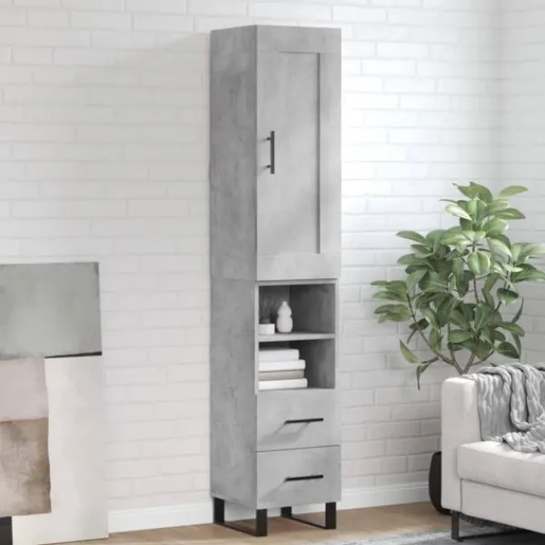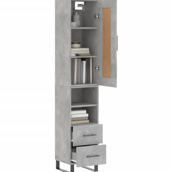 Letar du efter ett snyggt skåp till ditt hem? Detta högskåp ger din befintliga inredning en elegant charm! Hållbart material: Det konstruerade träet är av exceptionell kvalitet med slät yta och är också starkt, stabilt och fuktbeständigt. Skåpet är tillverkat av konstruerat trä och är robust och hållbart.Gott om förvaring: Skåpet har gott om förvaringsutrymme för att hålla dina olika saker välorganiserade och inom räckhåll.Praktisk dörr: Håll ordning i ditt hem genom att gömma småsaker i detta högskåp.Metallfötter: Metallfötterna ger din inredning ett lugn stil samtidigt som de säkerställer stabilitet. Varning:För att förhindra att den välter måste denna produkt användas tillsammans med det medföljande väggfästet. Bra att känna till:Skruvar och väggplugg ingår inte. Vi rekommenderar att du använder skruvar och plugg som passar dina väggar. Om du är osöker, sök professionell hjälp. Läs och följ varje steg i anvisningarna.