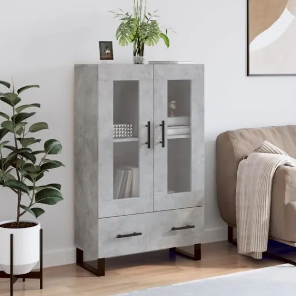 Letar du efter ett snyggt skåp till ditt hem? Detta högskåp ger din befintliga inredning en modern charm! Hållbart material: Det konstruerade träet är av exceptionell kvalitet med slät yta och är också starkt, stabilt och fuktbeständigt. Metallben: Metallbenen utstrålar en modern och lugn charm i din inredning samtidigt som du garanteras stabilitet. Gott om förvaring: Skåpet har gott om förvaringsutrymme för att hålla dina olika saker välorganiserade och inom räckhåll. Robust toppskiva: Toppskivan är perfekt för att visa upp dekorationer, foton och krukväxter. Praktisk design: Dina tillhörigheter är synliga bakom glasdörren, samtidigt som de skyddas från damm. Dessutom har skåpet handtag som gör det enkelt att öppna dörrarna. Varning:För att förhindra att den välter måste denna produkt användas tillsammans med det medföljande väggfästet.