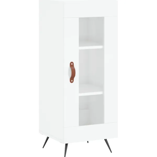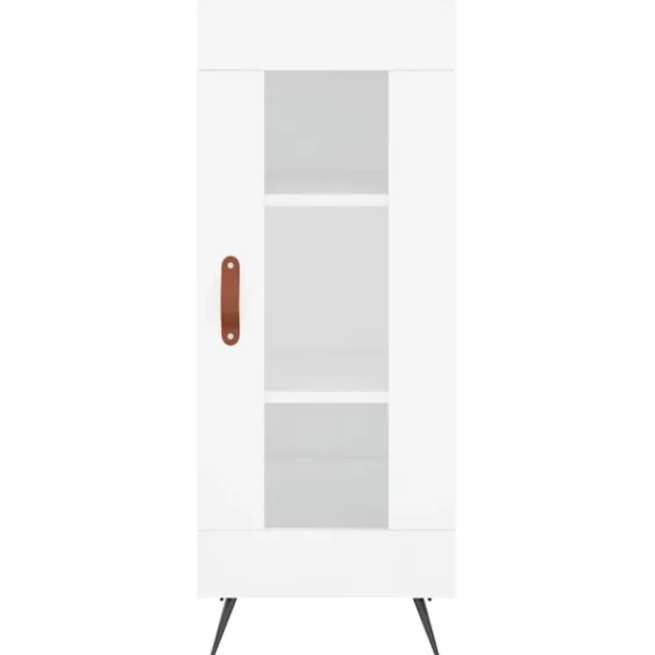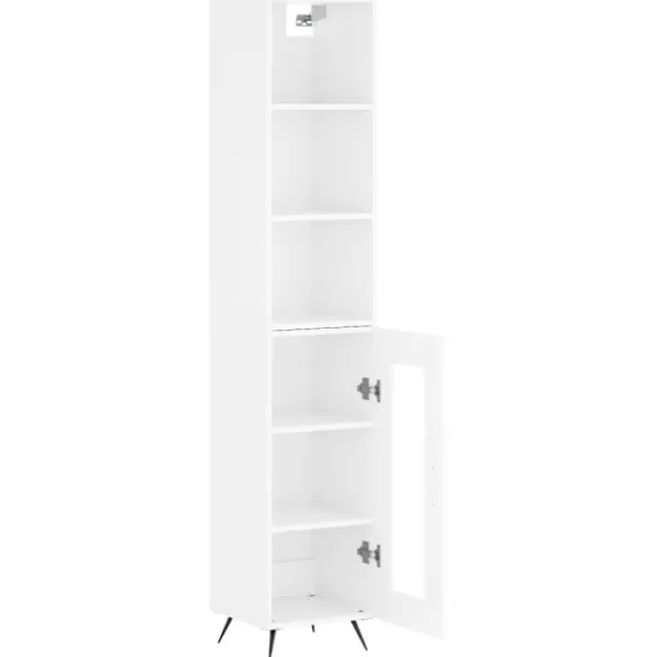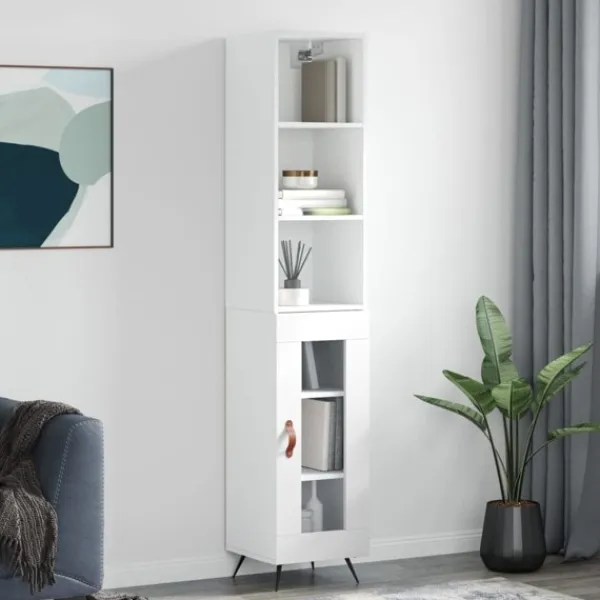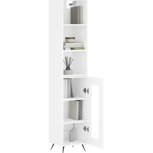 Letar du efter ett snyggt skåp till ditt hem? Detta högskåp ger din befintliga inredning en elegant charm! Hållbart material: Det konstruerade träet är av exceptionell kvalitet med slät yta och är också starkt, stabilt och fuktbeständigt.Gott om förvaring: Skåpet har gott om förvaringsutrymme för att hålla dina olika saker välorganiserade och inom räckhåll.Praktiska dörrar: Håll ordning i ditt hem genom att gömma småsaker bakom skåpets dörrar.Glasdesign: Glasdörrarna framhäver skänkens elegans och låter dig visa dina prydnadssaker.Metallfötter: Metallfötterna ger din inredning ett lugn stil samtidigt som de säkerställer stabilitet. Varning:För att förhindra att den välter måste denna produkt användas tillsammans med det medföljande väggfästet. Bra att känna till:Skruvar och väggplugg ingår inte. Vi rekommenderar att du använder skruvar och plugg som passar dina väggar. Om du är osöker, sök professionell hjälp. Läs och följ varje steg i anvisningarna.