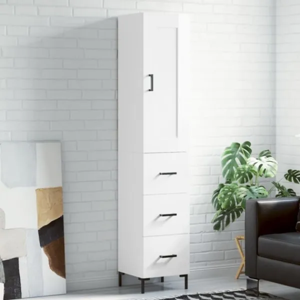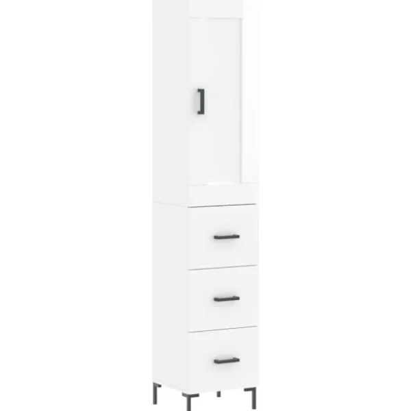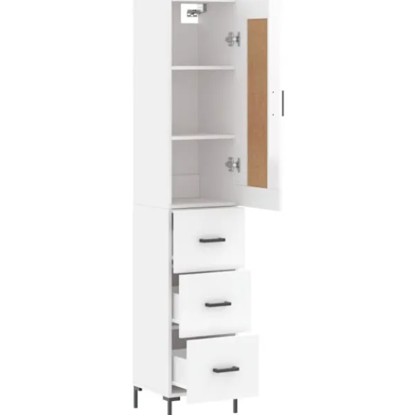 Letar du efter ett snyggt skåp till ditt hem? Detta högskåp ger din befintliga inredning en elegant charm! Hållbart material: Det konstruerade träet är av exceptionell kvalitet med slät yta och är också starkt, stabilt och fuktbeständigt. Skåpet är tillverkat av konstruerat trä och är robust och hållbart.Gott om förvaring: Skåpet har gott om förvaringsutrymme för att hålla dina olika saker välorganiserade och inom räckhåll.Praktisk dörr: Håll ordning i ditt hem genom att gömma småsaker i detta högskåp.Metallfötter: Metallfötterna ger din inredning ett lugn stil samtidigt som de säkerställer stabilitet. Varning:För att förhindra att den välter måste denna produkt användas tillsammans med det medföljande väggfästet. Bra att känna till:Skruvar och väggplugg ingår inte. Vi rekommenderar att du använder skruvar och plugg som passar dina väggar. Om du är osöker, sök professionell hjälp. Läs och följ varje steg i anvisningarna.