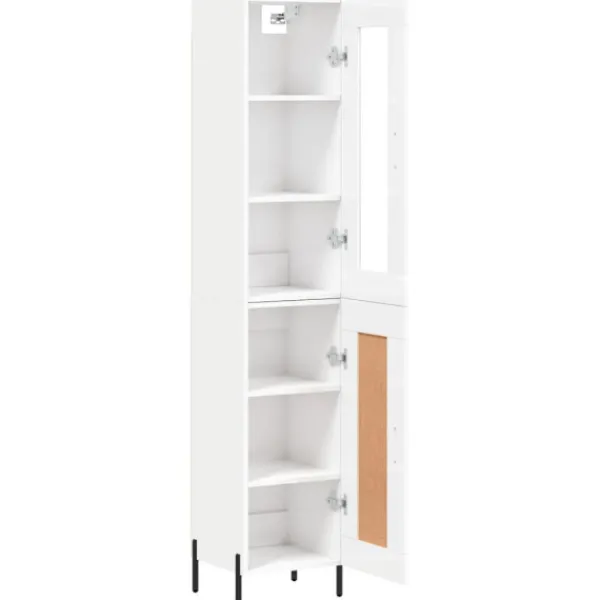 Letar du efter ett snyggt skåp till ditt hem? Detta högskåp ger din befintliga inredning en elegant charm! Hållbart material: Det konstruerade träet är av exceptionell kvalitet med slät yta och är också starkt, stabilt och fuktbeständigt.Gott om förvaring: Skåpet har gott om förvaringsutrymme för att hålla dina olika saker välorganiserade och inom räckhåll.Praktiska dörrar: Håll ordning i ditt hem genom att gömma småsaker bakom skåpets dörrar.Järnben: Järnbenen utstrålar en industriell charm i din inredning samtidigt som de är stabila. Varning:För att förhindra att den välter måste denna produkt användas tillsammans med det medföljande väggfästet. Bra att känna till:Skruvar och väggplugg ingår inte. Vi rekommenderar att du använder skruvar och plugg som passar dina väggar. Om du är osöker, sök professionell hjälp. Läs och följ varje steg i anvisningarna.
