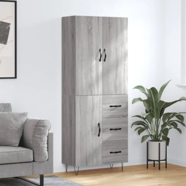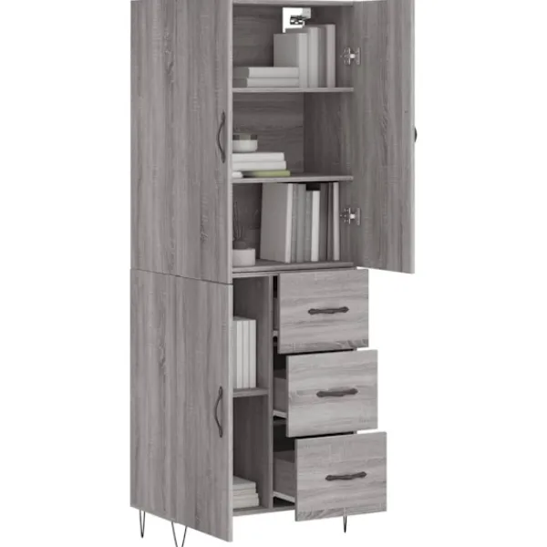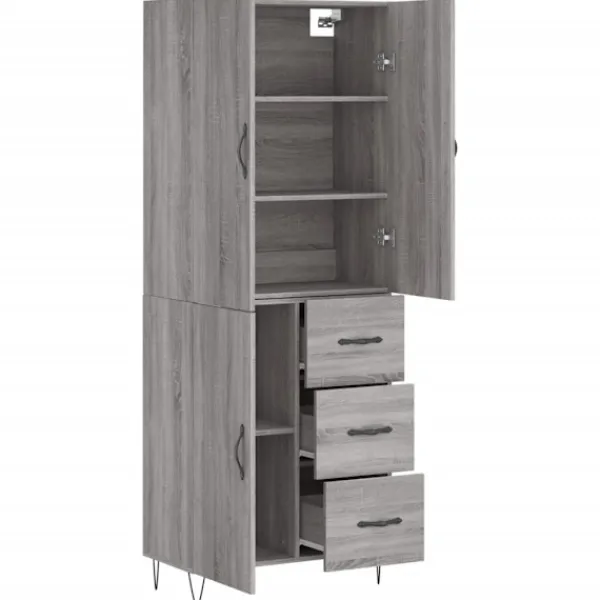 Letar du efter ett snyggt skåp till ditt hem? Detta högskåp ger din befintliga inredning en elegant charm! Hållbart material: Det konstruerade träet är av exceptionell kvalitet med slät yta och är också starkt, stabilt och fuktbeständigt.Gott om förvaring: Skåpet har gott om förvaringsutrymme för att hålla dina olika saker välorganiserade och inom räckhåll.Praktiska dörrar: Håll ordning i ditt hem genom att gömma småsaker bakom skåpets dörrar.Metallfötter: Metallfötterna ger din inredning ett lugn stil samtidigt som de säkerställer stabilitet. Varning:För att förhindra att den välter måste denna produkt användas tillsammans med det medföljande väggfästet. Bra att känna till:Skruvar och väggplugg ingår inte. Vi rekommenderar att du använder skruvar och plugg som passar dina väggar. Om du är osöker, sök professionell hjälp. Läs och följ varje steg i anvisningarna.
