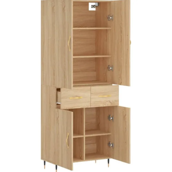 Letar du efter ett snyggt skåp till ditt hem? Detta högskåp ger din befintliga inredning en elegant charm! Hållbart material: Det konstruerade träet är av exceptionell kvalitet med slät yta och är också starkt, stabilt och fuktbeständigt.Gott om förvaring: Skåpet har gott om förvaringsutrymme för att hålla dina olika saker välorganiserade och inom räckhåll.Praktiska dörrar: Håll ordning i ditt hem genom att gömma småsaker bakom skåpets dörrar.Metallfötter: Metallfötterna ger din inredning ett lugn stil samtidigt som de säkerställer stabilitet. Varning:För att förhindra att den välter måste denna produkt användas tillsammans med det medföljande väggfästet. Bra att känna till:Skruvar och väggplugg ingår inte. Vi rekommenderar att du använder skruvar och plugg som passar dina väggar. Om du är osöker, sök professionell hjälp. Läs och följ varje steg i anvisningarna.