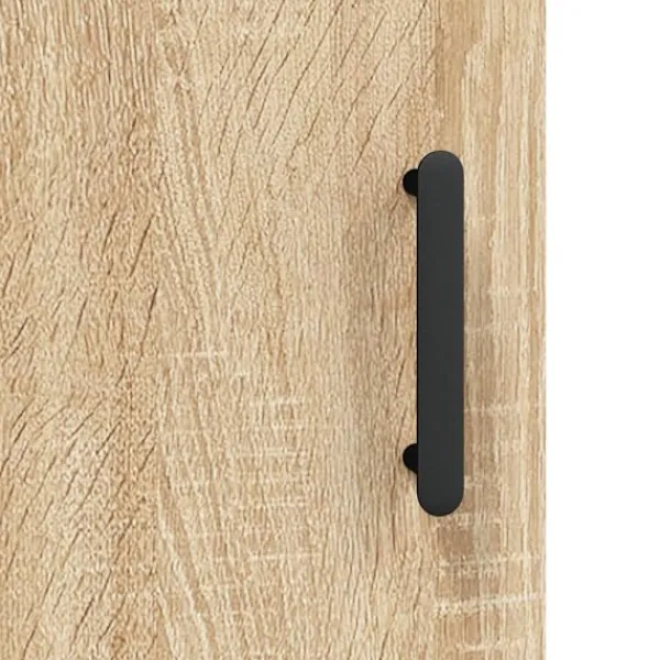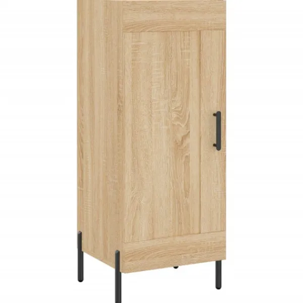 Letar du efter ett snyggt skåp till ditt hem? Detta högskåp ger din befintliga inredning en elegant charm! Hållbart material: Det konstruerade träet är av exceptionell kvalitet med slät yta och är också starkt, stabilt och fuktbeständigt. Skåpet är tillverkat av konstruerat trä och är robust och hållbart.Gott om förvaring: Skåpet har gott om förvaringsutrymme för att hålla dina olika saker välorganiserade och inom räckhåll.Praktiska dörrar: Håll ordning i ditt hem genom att gömma småsaker bakom skåpets dörrar.Metallfötter: Metallfötterna ger din inredning ett lugn stil samtidigt som de säkerställer stabilitet. Varning:För att förhindra att den välter måste denna produkt användas tillsammans med det medföljande väggfästet. Bra att känna till:Skruvar och väggplugg ingår inte. Vi rekommenderar att du använder skruvar och plugg som passar dina väggar. Om du är osöker, sök professionell hjälp. Läs och följ varje steg i anvisningarna.