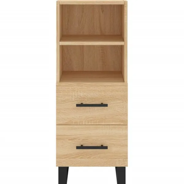 Letar du efter ett snyggt skåp till ditt hem? Detta högskåp ger din befintliga inredning en elegant charm! Hållbart material: Det konstruerade träet är av exceptionell kvalitet med slät yta och är också starkt, stabilt och fuktbeständigt.Gott om förvaring: Skåpet har gott om förvaringsutrymme för att hålla dina olika saker välorganiserade och inom räckhåll.Praktiska dörrar: Håll ordning i ditt hem genom att gömma småsaker bakom skåpets dörr.Metallfötter: Metallfötterna ger din inredning ett lugn stil samtidigt som de säkerställer stabilitet. Varning:För att förhindra att den välter måste denna produkt användas tillsammans med det medföljande väggfästet. Bra att känna till:Skruvar och väggplugg ingår inte. Vi rekommenderar att du använder skruvar och plugg som passar dina väggar. Om du är osöker, sök professionell hjälp. Läs och följ varje steg i anvisningarna.