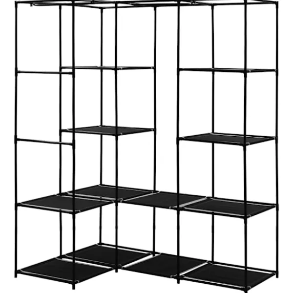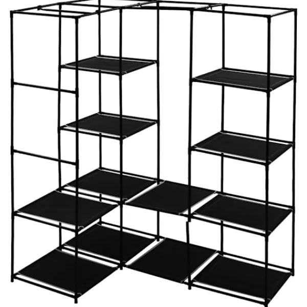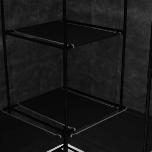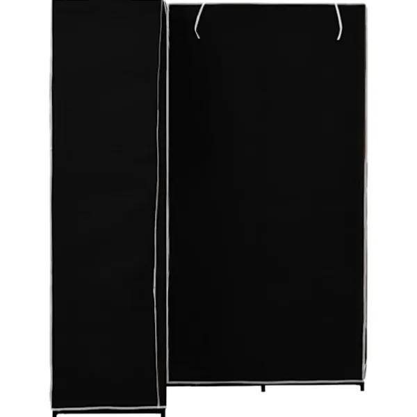 Denna hörngarderob blir en ultimat förvaringslösning för dina kläder och skor. Den har en robust järnram som gör klädställningen ytterst hållbar. Dess konstruktion gör detta tyghörnskåp stabilare än ett vanligt tygsskåp. Den platsbesparande garderoben optimerar ditt hörnutrymme och erbjuder därför stort förvaringsutrymme och flera upphängningsmöjligheter för att hålla dina väskor, skor och småsaker organiserade och inom räckhåll. Tygöverdraget med blixtlås skyddar dina kläder från smuts och damm.