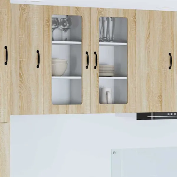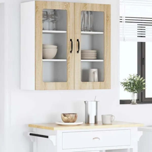 Det här träskåpet är designat i en modern stil, och passar perfekt in i dagens kök. Det konstruerade träet gör det hållbart och enkelt att använda inomhus. Med sina rena linjer och minimalistiska stil ger det en elegant känsla i varje kök. Skåpet erbjuder bra förvaring med sina smarta fack och hyllor, oavsett om du har tallrikar eller matvaror. Det smälter in med din moderna köksinredning och gör matlagningen både enklare och trevligare.