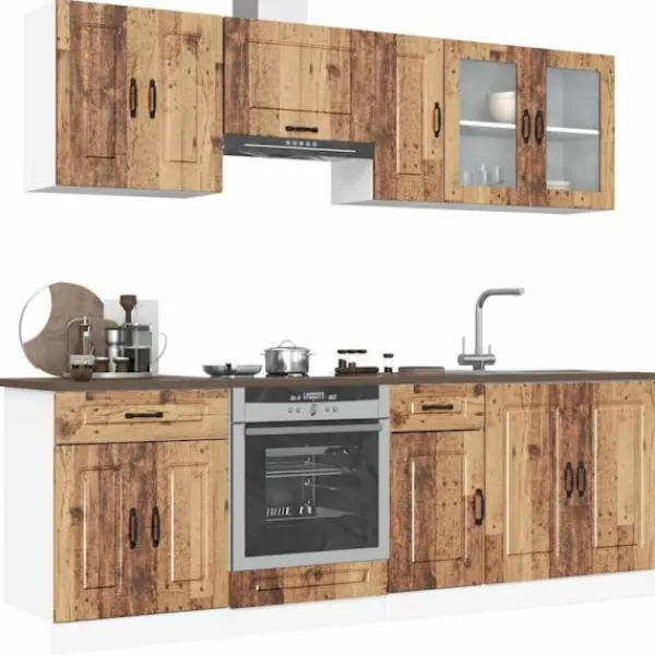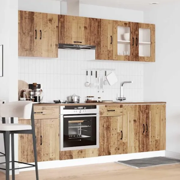 Denna 8-delade köksskåpsuppsättning, med sin eleganta design, optimerar ditt köksutrymme och ger gott om förvaringsutrymme för dina personliga tillhörigheter!