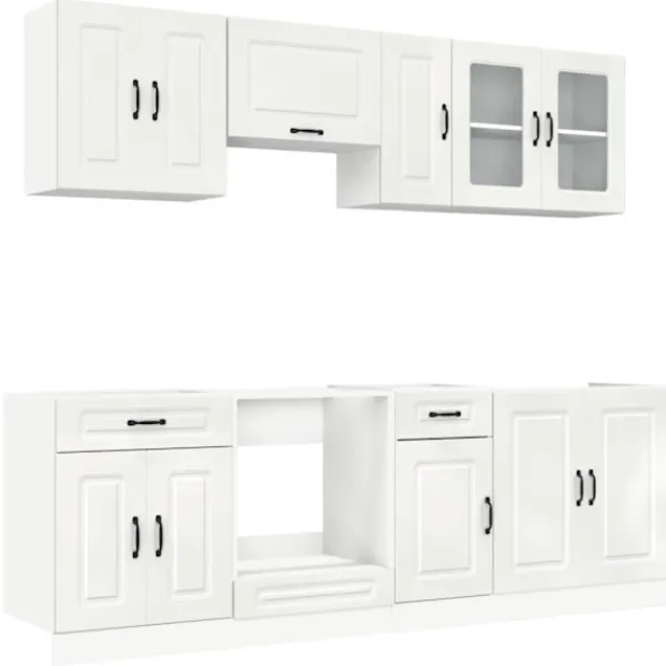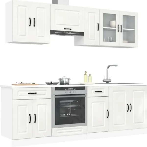 Denna 8-delade köksskåpsuppsättning, med sin eleganta design, optimerar ditt köksutrymme och ger gott om förvaringsutrymme för dina personliga tillhörigheter!
