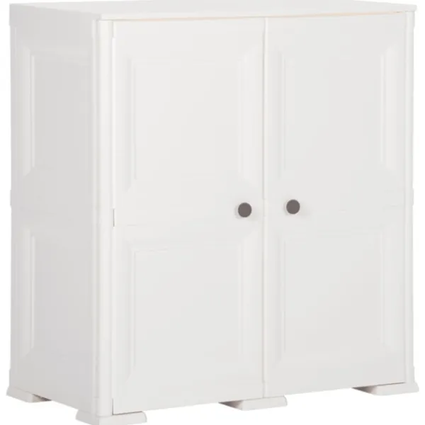 Detta förvaringsskåp är tillverkat av plast, vilket gör det lätt att rengöra. Skåpet har gott om förvaringsutrymme för att hålla dina viktiga föremål organiserade och inom räckhåll. Förvaringsskåpet har en kompakt design och kommer att använda den begränsade ytan på bästa sätt.