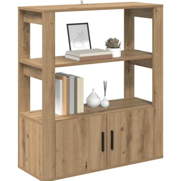 - Rymliga hyllor Skåpet har hyllor i konstruerat trä, som ger en praktisk förvaringslösning. Det finns massor av plats för att organisera allt från böcker till dekorativa prylar, vilket gör det till en nyckelkomponent i din inredning. Den enkla designen smälter väl in med den övergripande minimalistiska stilen och är användbar utan att ta för mycket plats.