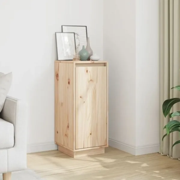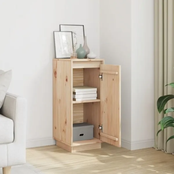 Denna skänk ger en känsla av elegans och ett elegant utseende i ditt vardagsrum. Detta sidoskåp är tillverkat av massiv furu som säkerställer dess hållbarhet och stabilitet. Skåpet har gott om förvaringsutrymme för böcker, multimediaapparater och andra föremål. Den stadiga bordsytan är perfekt för dekorativa objekt såsom inramade foton, krukväxter eller en vas.