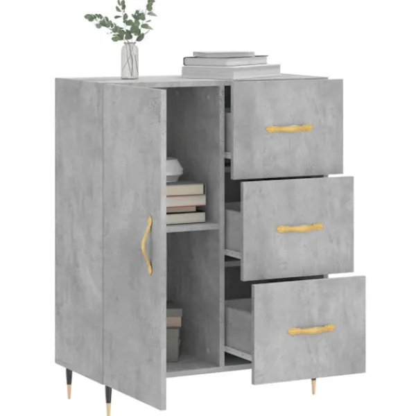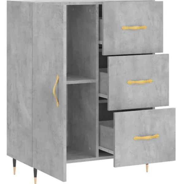 Detta klassiska skåp har en tidlös look, vilket gör det till ett perfekt komplement till ditt hem. Robust material: Det konstruerade träet är av exceptionell kvalitet med slät yta och är också starkt, stabilt och fuktbeständigt.Gott om förvaring: Byrån har 3 lådor och 2 fack bakom dörren, med gott om förvaringsutrymme för att hålla dina olika saker välorganiserade och inom räckhåll.Visningsfunktion: Den robusta ovansidan är perfekt för att visa dekorativa föremål, fotoramar eller krukväxter på.Praktisk dörr: Håll dina väsentligheter dammfria genom att bevara dem i detta förvaringsskåp.Metallfötter: Metallfötterna ger din inredning ett lugn stil samtidigt som de säkerställer stabilitet. Varning:För att förhindra att den välter måste denna produkt användas tillsammans med det medföljande väggfästet.