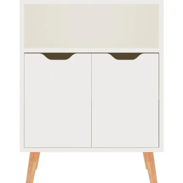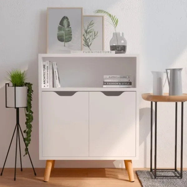 Denna skänk ger en känsla av elegans och ett elegant utseende i ditt vardagsrum. Denna skänk är tillverkad av kvalitativt konstruerat trä som säkerställer dess hållbarhet och är lätt att rengöra med en fuktig trasa. Skänken har gott om förvaringsutrymme för böcker, multimediaapparater och andra föremål. Den stadiga bordsytan är perfekt för dekorativa objekt såsom inramade foton, krukväxter eller en vas.