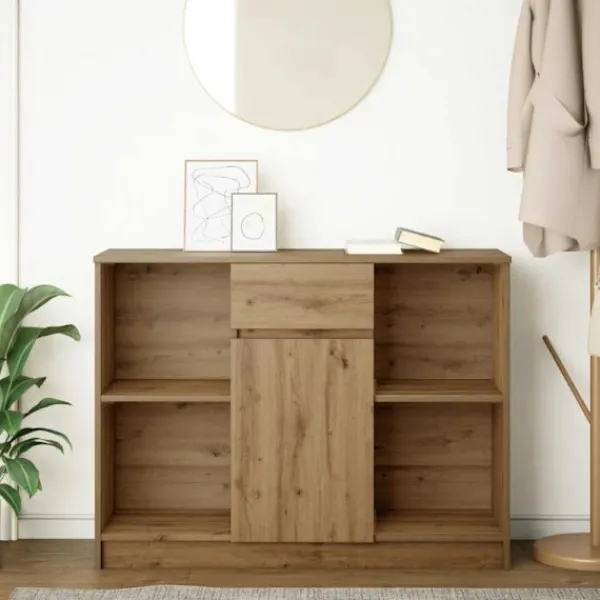 - Anpassningsbar installation: Skänkskåpet kan monteras i två konfigurationer, vilket gör att du kan placera lådan och den lilla dörren på antingen höger eller vänster sida, med den större dörren därefter. Denna flexibilitet säkerställer att den uppfyller dina specifika behov och preferenser.