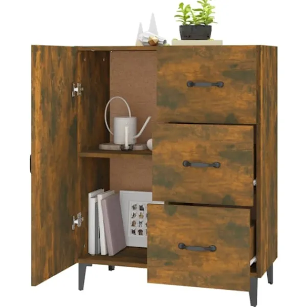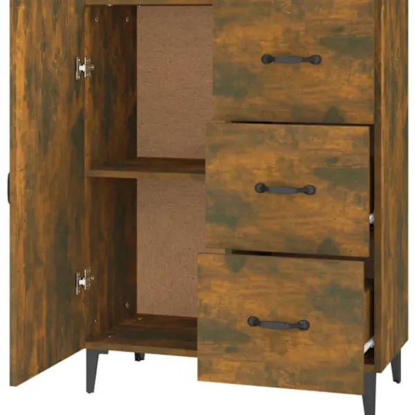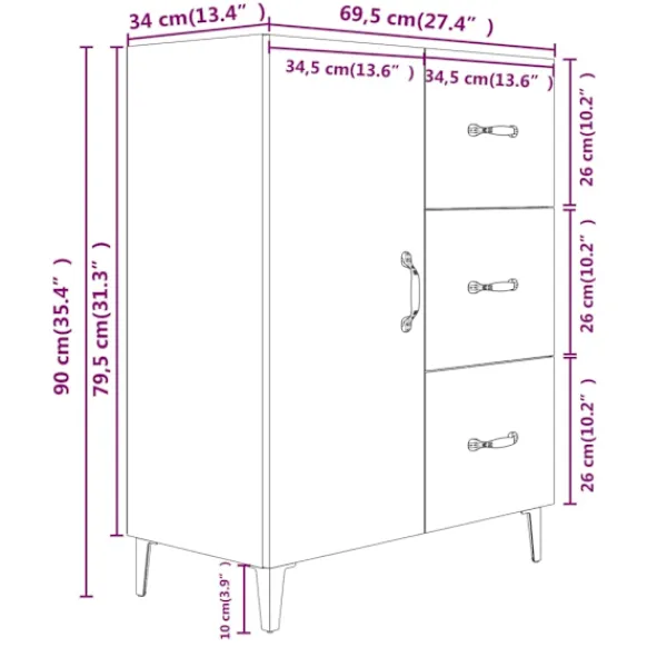 Denna klassiska skänk kommer att bli ett praktiskt tillskott till ditt hem. Praktiskt material: Det konstruerade träet är av exceptionell kvalitet med slät yta och har också styrka, stabilitet samt fuktbeständighet.Gott om förvaring: Skänken har 1 dörr och 3 lådor, vilket ger gott om förvaringsutrymme för att hålla dina olika saker välorganiserade och inom räckhåll. Ovansidan av skänken är perfekt för att ställa dina prydnadssaker på.Lätt att rengöra: Bokskåpet är lätt att rengöra med en fuktig trasa.Snygg design: Denna skänk har en elegant design, som kommer att tillföra en unik charm till din nuvarande inredning! Varning:För att förhindra att den välter måste denna produkt användas med den medföljande monteringsanordningen för vägg