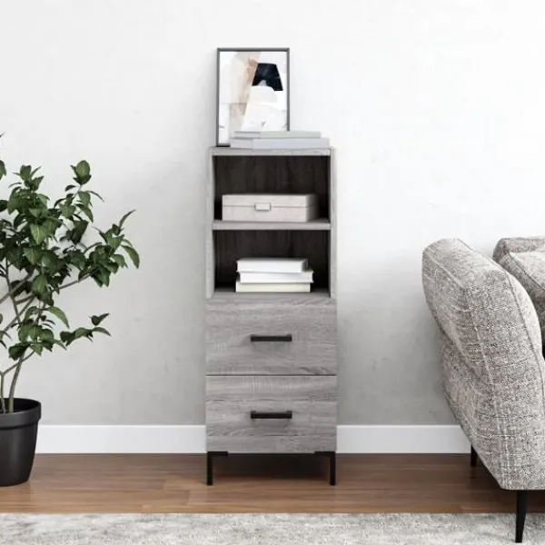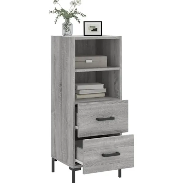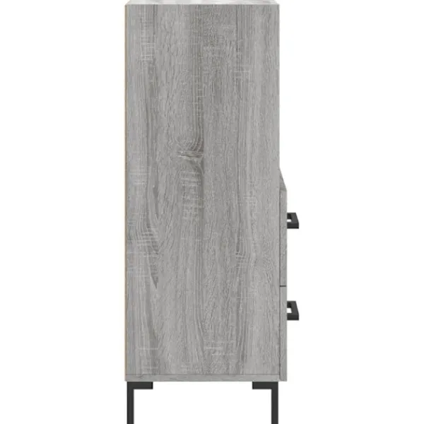 Denna moderna skänk med ett tidlöst utseende kan bli ett perfekt tillägg till din heminredning. Hållbart material: Det konstruerade träet är av exceptionell kvalitet med slät yta och är också starkt, stabilt och fuktbeständigt. Metallben: Metallbenen utstrålar en modern och lugn charm i din inredning samtidigt som du garanteras stabilitet. Gott om förvaringsutrymme: Skåpet har 2 lådor och 2 utrymmen för att hålla saker organiserade och inom räckhåll. Robust toppskiva: Toppskivan är perfekt för att visa upp dekorationer, foton och krukväxter. Varning:För att förhindra att den välter måste denna produkt användas tillsammans med det medföljande väggfästet.