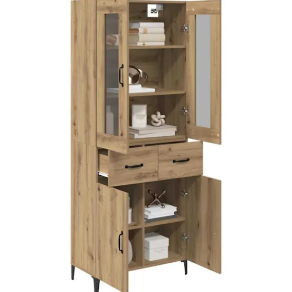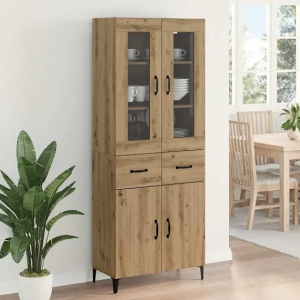 - Flera förvaringsalternativ: Skåpet har rymliga hyllor, fack och lådor av konstruerat trä, vilket ger gott om plats för att organisera allt från hushållsartiklar till dekoration. Allt hålls snyggt och lättillgängligt.