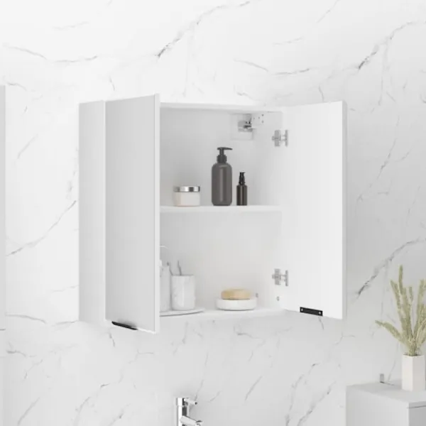 Det stilrena spegelskåpet har plats för alla dina förvaringsbehov, med ett modernt utseende i ett urval av färger. Stabilt material: Det konstruerade träet är av exceptionell kvalitet med slät yta och är också starkt, stabilt och fuktbeständigt.Ytterligare förvaringsutrymme: Denna badrumsmöbel har gott om förvaring bakom två spegeldörrar för att hålla badrumsmaterial för hela familjen.Snygg design: De rena linjerna och den eleganta designen gör att detta skåp smälter in i ditt badrum. Observera:Skruv(ar) och plugg(ar) för insidan av väggen ingår ej. Sök och använd skruv(ar) och plugg(ar) som passar dina väggar. Om du är osäker, sök professionell rådgivning. Läs och följ varje steg i instruktionerna noggrant.Varje produkt levereras med en monteringsmanual i lådan för enkel montering.