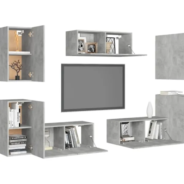 Denna uppsättning stadiga tv-skåp blir en mittpunkt i ditt vardagsrum med sin trendiga men ändå praktiska design. TV-skåpen skall fästas på väggen, vilket gör de till ett tidlöst tillskott till ditt hem. De har gott om förvaringsfack vilket gör de till en idealisk plats för förvaring av alla dina böcker, tidskrifter, DVD -skivor eller andra föremål. Skåpen är lätta att underhålla och rengöra med en fuktig trasa.