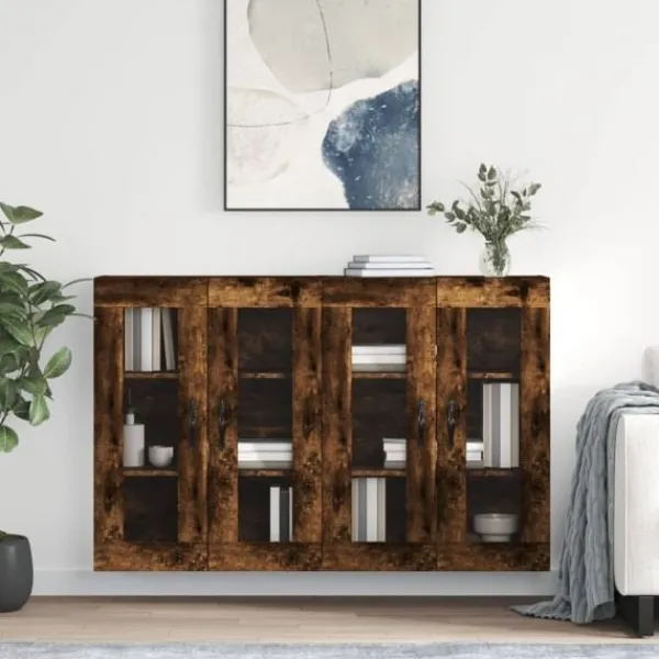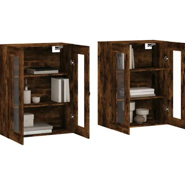 Dessa praktiska och dekorativa väggskåp introducerar en unik charm i din befintliga inredning. Robust material: Det konstruerade träet är av exceptionell kvalitet med slät yta och är också starkt, stabilt och fuktbeständigt.Gott om förvaring: Förvaringsskåpen har gott om förvaringsutrymme för att hålla dina saker välorganiserade och inom räckhåll. Luckorna med glasfönster gör det möjligt att se och enkelt hitta föremålen inuti.Väggmonterad design: Denna förvaringsenhet kan väggmonteras för att få extra utrymme. På så sätt kan du maximera din golvyta och hålla ytan ren.Mångsidig förvaring: Du kan också ställa dem ovanpå en skänk för att skapa ett högskåp för extra lagringsutrymme. Bra att känna till:Skruvar och väggplugg ingår inte. Vi rekommenderar att du använder skruvar och plugg som passar dina väggar. Om du är osöker, sök professionell hjälp. Läs och följ varje steg i anvisningarna.
