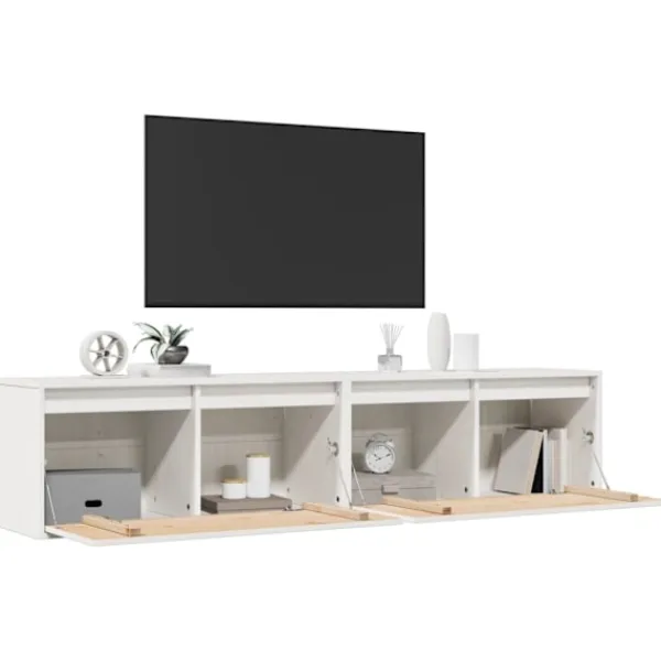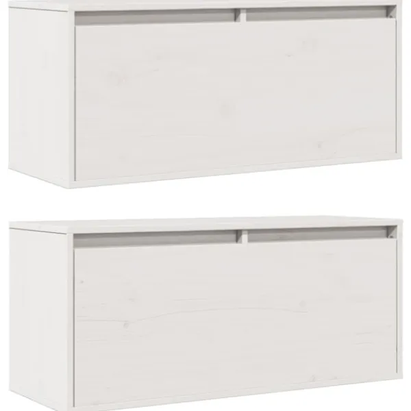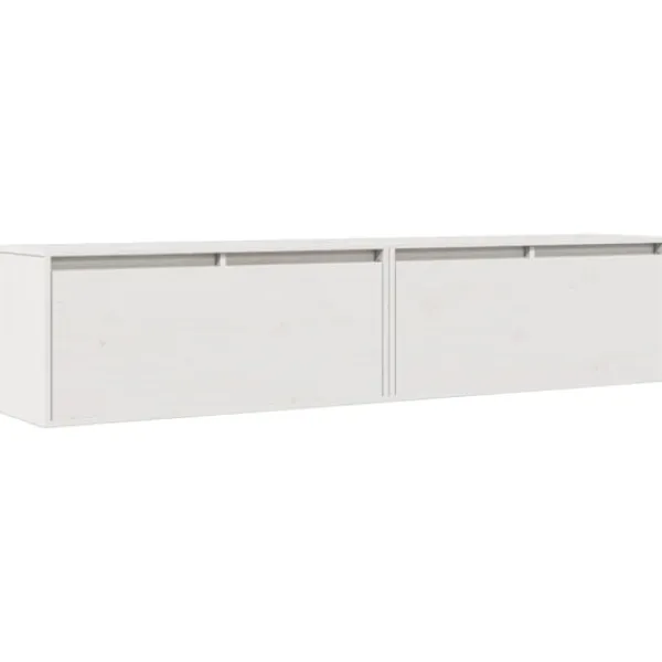 Dessa väggskåp blir en dekorativ och praktisk förlängning av din inredning. Du kan också använda de som TV-skåp Väggskåpet är tillverkat av massivt furuträ, vilket garanterar robusthet, hållbarhet och långvarig service. Väggenheten fungerar som den perfekta platsen att placera föremål som böcker, samlarobjekt, ornament och mer. Skåpet förvandlar en tom vägg till en designfunktion. Dessutom är det flytande skåpet lätt att rengöra med en fuktig trasa. Obs: Skruvar och plugg för insidan av väggen ingår ej. Sök och använd skruvar och plugg som är lämpliga för dina väggar. Om du är osäker, sök professionell rådgivning. Läs och följ varje steg i instruktionen noggrant.