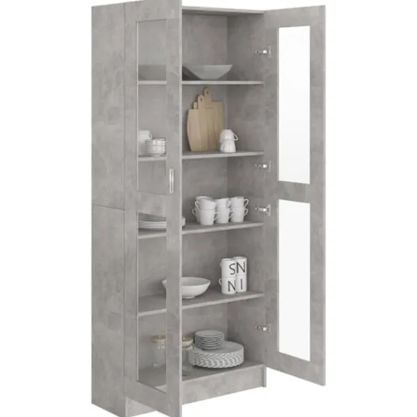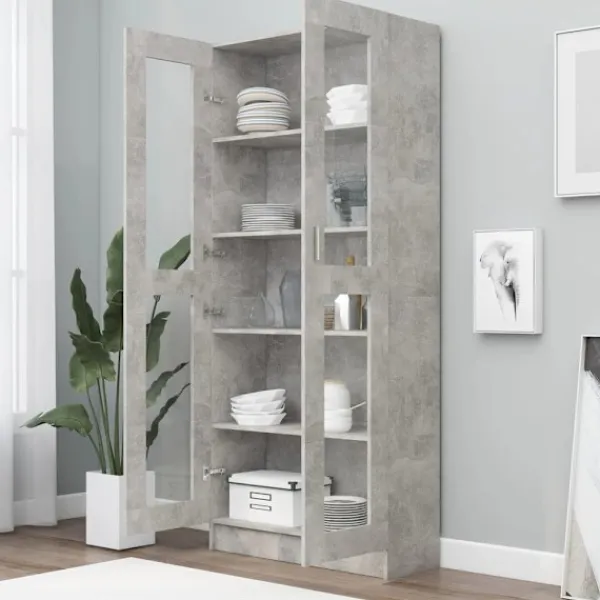Vitrinskåpet har en elegant och klassisk design, det blir ett dekorativt och praktiskt tillskott i din inredning. Skåpet är tillverkat av konstruerat trä, vilket säkerställer dess robusthet och hållbarhet. Bokhyllan är designad med 5 rymliga fack och 2 dörrar med gott om lagringsutrymme för att hålla dina tidningar, böcker, DVD-skivor, multimediaenheter och andra dekorativa föremål välorganiserade och inom räckhåll. Mångsidig användning: Bokhyllan är också en perfekt förvaringslösning i vilket rum som helst. Dessutom är bokhyllan enkel att rengöra med en fuktig trasa.