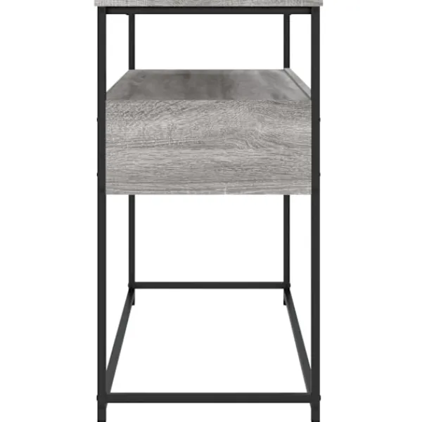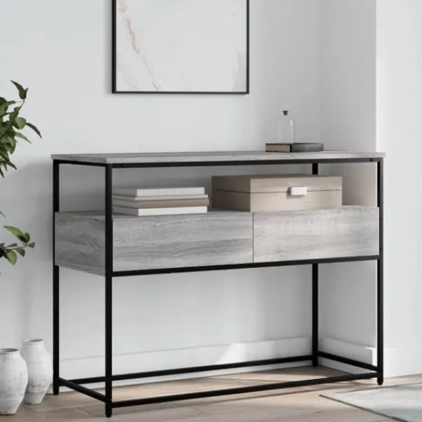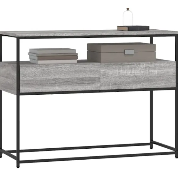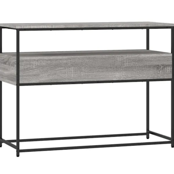 Få en elegant känsla i hallen, vardagsrummet eller entrén med detta snygga avlastningsbord. Hållbart material: Det konstruerade träet är av exceptionell kvalitet med slät yta och är också starkt, stabilt och fuktbeständigt. Med konstruerat trä som byggmaterial är soffbordet lätt att rengöra.Gott om lagringsutrymme: Hallbordet har gott om lagringsutrymme för att hålla dina tidskrifter, böcker och andra dekorativa föremål välorganiserade och inom räckhåll.Justerbara fötter: Fyra justerbara fötter med plasttassar håller hallbordet balanserat på ojämnt underlag och ökar stabiliteten.Metallram: Metallramen lägger till en industriell stil till din interiör samtidigt som den garanterar hållbarhet och stabilitet. Varning:För att förhindra att den välter måste denna produkt användas tillsammans med det medföljande väggfästet.