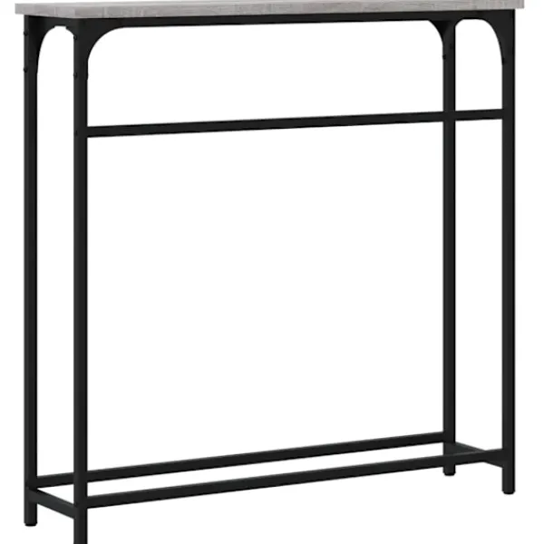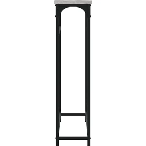 Få en elegant känsla i hallen, vardagsrummet eller entrén med detta snygga avlastningsbord. Hållbart material: Det konstruerade träet är av exceptionell kvalitet med slät yta och är också starkt, stabilt och fuktbeständigt. Med konstruerat trä som byggmaterial är soffbordet lätt att rengöra.Robust bordsskiva: Hallbordet är perfekt för att placera dina inramade foton, krukväxter och andra dekorativa föremål.Justerbara fötter: Fyra justerbara fötter med plasttassar håller hallbordet balanserat på ojämnt underlag och ökar stabiliteten.Metallram: Metallramen lägger till en industriell stil till din interiör samtidigt som den garanterar hållbarhet och stabilitet. Varning:För att förhindra att den välter måste denna produkt användas tillsammans med det medföljande väggfästet.
