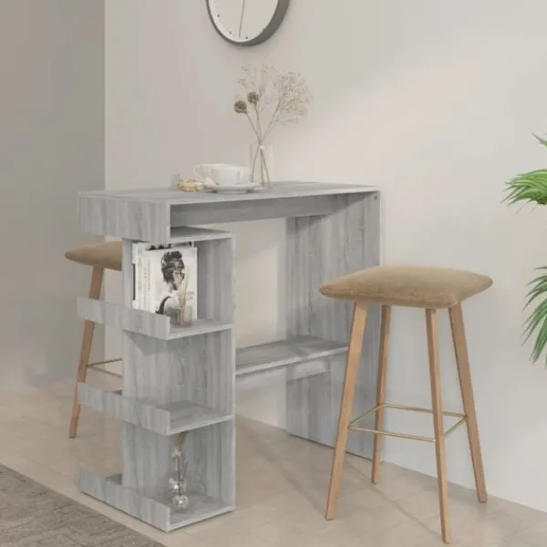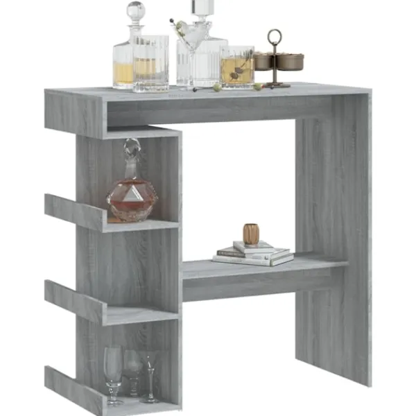 Detta barbord är det perfekta valet för små lägenheter eller begränsade utrymmen. Dess moderna design gör bordet till en elegant möbel i ditt kök eller matplats. Barbordet har 3 hyllor med gott om plats att ställa vinflaskor eller andra saker. Tack vare konstruktionen är det hållbart, stadigt och lätt att rengöra. Bordet har dessutom fotstöd för utmärkt komfort.