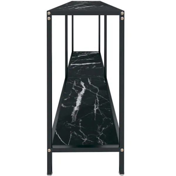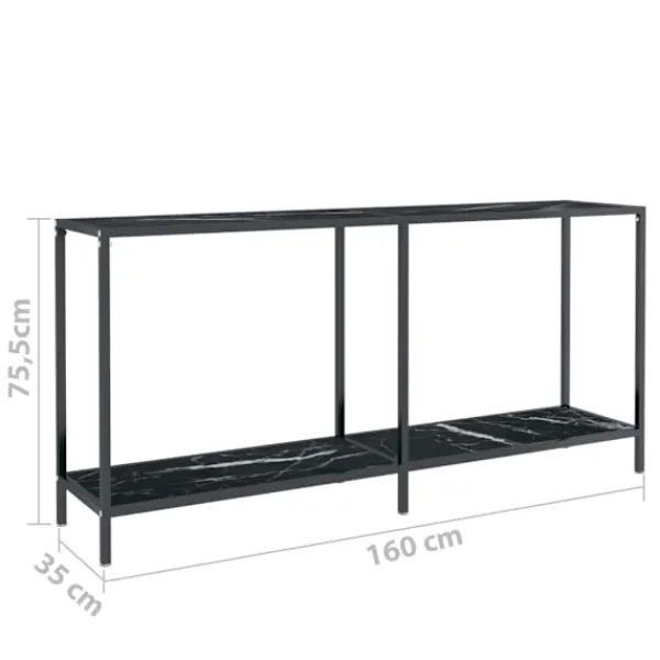 Detta konsolbord är ett perfekt val för att få en enkel men elegant stil i inredningen. Konsolbordet är tillverkat i härdat glas och pulverlackerat stål, vilket gör det stadigt och hållbart. Det är enkelt att rengöra med en fuktig trasa. Dessutom har det en hylla med extra förvaring.